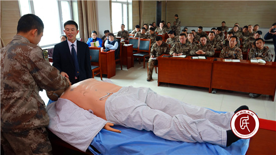 宣讲团成员的老师先后讲解了战士普遍关心的止血包扎、伤员搬运、义务献血、急性冠状动脉综合症等知识,重点围绕意外伤害和应急救护应急救护基础展开了深入讲解,并针对心跳骤停等情况进行了心肺复苏急救技能演示。在短短的两个小时内,战士们学习了基本的急救原则、措施及注意事项,还亲自进行应急救护操作。共80余位官兵参加了当日的公益培训。