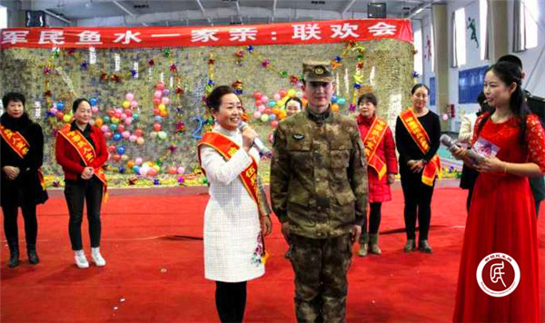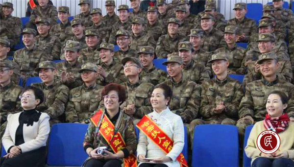 让新兵战士们更为感动的是,14名由爱心志愿者组成的兵爸爸、兵妈妈们,现场与新兵战士们结对认亲。亲人们抱一抱战士,摸一摸脸庞,拉一拉手,战士们亲切地喊上一声“爸妈”,官兵们掌声一浪高过一浪。人民的官兵人民爱,子弟兵倾情爱人民。来自江西的新兵郑华强激动地说:“在新春佳节里,不仅欣赏到了精彩的节目,还找到一位兵妈妈,让我深深感受到一股爱的暖流。我会永远记住这一个美好的时刻,也会激励着我刻苦锻炼,为祖国和人民守好边防站好岗。”