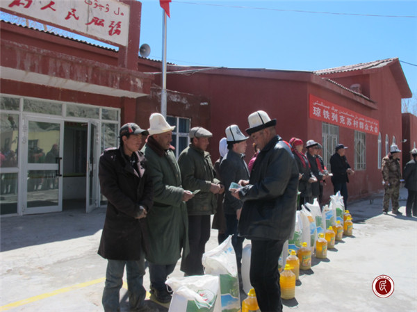 4月9日上午12时,乌恰县乌鲁克恰提乡琼铁列克苏村村委分外热闹,数百名牧民齐聚在村委会院内参加由2名通过自身不断努力学习就业成功的牧民自主发起的向琼铁列克苏村10户贫困家庭献爱心活动。