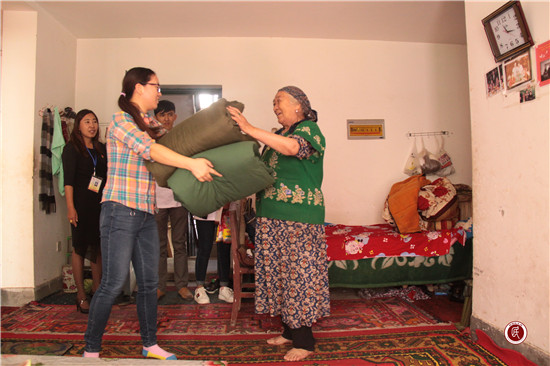 阿克陶县团委志愿者和社区干部带上被褥、床等慰问品,一同走进老人家中,为老人们修理家电、打扫卫生,陪老人聊天、拉家常,询问老人的生活、身体状况,并叮嘱老人注意防火防灾等平时应注意的安全隐患,遇到事情及时与社区和邻居联系。对于志愿者们的关爱,老人们非常感动,并连连感谢志愿者对他们的关心和照顾。