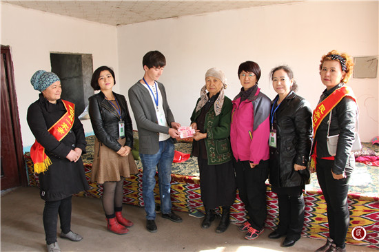 新疆民生网(李玉金)“你是维吾尔族,我是汉族,在我困难的时候你们来帮助我这个老太婆,太谢谢你们了!”这是 60岁的汉族大妈曾桂香说的一番话。近日,昌吉州卫计委下沉基层干部邀请吉木萨尔县“爱的使者”民族团结志愿服务队,来到吉木萨尔县老台乡老台村开展志愿服务活动,慰问贫困老人、孤寡老人和困难家庭。