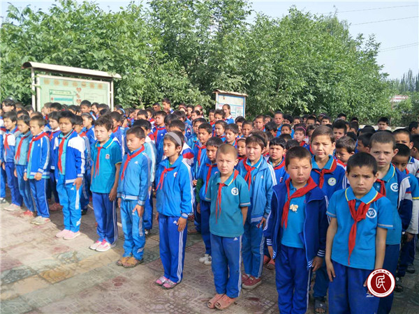 当天一大早,中国联通公司捐赠叶城县乌吉热克乡巴什阿瓦提小学“爱心书屋”活动,在孩子们及驻村工作队成员共同参加的升国旗仪式中开始。
