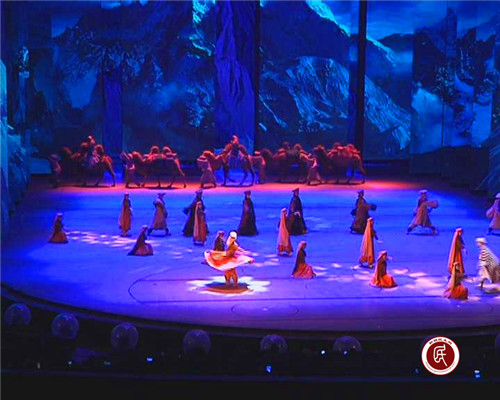 大型室内实景民族歌舞秀《千回西域》第一幕《大爱》,气势恢宏、驼铃回荡。《玉魂》、《梦回》、《生命》、《燃情》和《草原之恋》等章节,画面美轮美奂,让观看演出的老人们无不惊叹。今年71岁的马世文老人2006年进入到昌吉市中心敬老院,这次参加集体活动,观看大型演出,使他感触特深:”我们这次来看节目,心情特别好,特别激动,特别高兴,真是各级领导的关心,特别是市民政上对我们这些孤寡老人的关心确实周到。再一个,国家政策也好,我们老人真的是感恩党。“