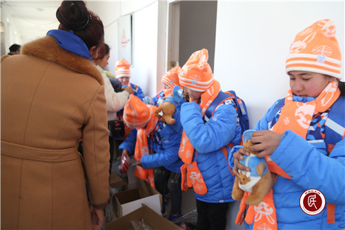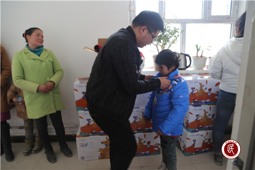 “暖和的羽绒服和棉鞋、可爱的袋鼠玩偶、崭新的书包、丰富的水彩笔……”铁英村的孩子们拿到爱心“温暖包”后略显兴奋,同时也腼腆的说着谢谢。随后,在工作队员和家长的帮助下,孩子们换上了新的衣服和棉鞋,戴上帽子和围巾并背上了新书包。