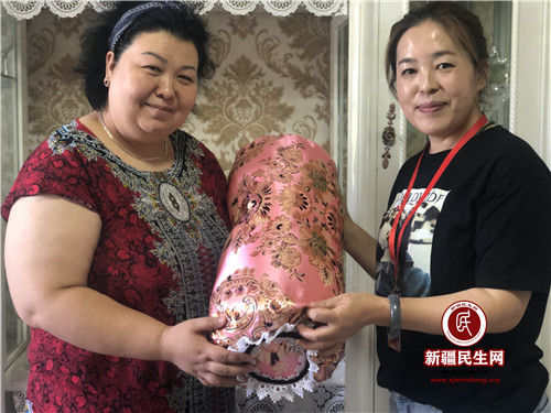 近日,得知小区里有两户家庭因家中有长期卧床的病人需要照料,生活十分拮据。她立即和缪萍商量,给他们每家做了一个漂亮舒服的枕头。当缪萍把和海丽法依一起亲手制作的将枕头送到了居民家里,居民们感激不已:“太感谢你们了,我能感受到,这个枕头上的一针一线都是你们宝贵的心意。”