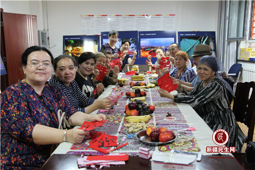 在中国,剪纸具有广泛的群众基础,交融于各族人民的社会生活,是各种民俗活动的重要组成部分。来绒老师是辖区的剪纸达人,她亲自教大家剪出了一个喜字,代表我们的生活喜乐融融。大家相互交流,剪出了一个个形状不同的喜字。“哇,我第一次剪出了一个像样的字,大家快看我的喜字,是不是很好看?”家住文化小区的吐逊古丽·买买提,高兴的拿着自己的成果给大家展示着。