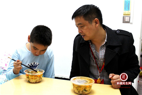 新疆油田公司行政事务中心驻克拉玛依区胜利路街道东风教育社区工作队队员汪强的亲戚阿依夏木·呼达拜地因年事已高身体不好照顾不了高三的外孙女艾孜娜·艾克拜尔和害羞腼腆的外孙艾再木·艾克拜尔,工作队队员汪强了解到家中实际情况和需求后,主动承担起照顾孩子的任务,汪强每天下班都在食堂打好饭送到家里照顾两个孩子的饮食。因为艾再木·艾克拜尔性格内向,不善与人交流,每每汪强都是一边陪同孩子们吃饭一边陪艾再木·艾克拜尔聊天,引导孩子勇于与人交流。