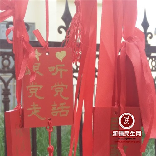 大家一边品尝美食,一边在主持人的引导下进行有奖问答,针对社区开展的十九大主题教育、扫黑除恶、维稳双联户、安全生产、平安家庭申报等内容进行了问答,居民们踊跃参与、气氛异常活跃。活动中,社区还组织居民们在民族团结祈福树上悬挂祈福牌,在中国共产党成立98周年生日来临之际,写下对伟大祖国、伟大中国共产党的祝福,增强各族居民群众的“五个认同”。