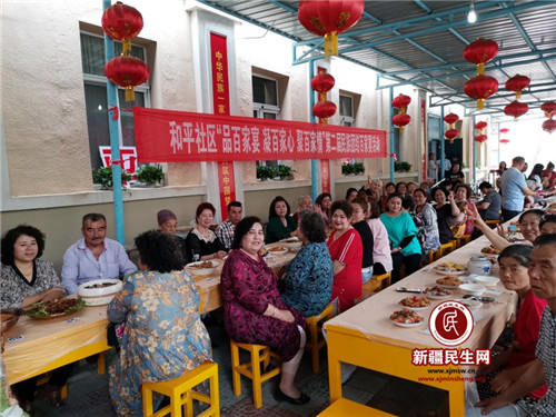 新疆民生网(李雪虹 王国泽)为了丰富社区居民的文化生活,促进邻里和谐,6月23日上午,市委办公室驻克拉玛依区和平社区“访惠聚”工作队、社区党总支举办了“品百家宴、凝百家心、聚百家情”第二届民族团结百家宴活动,现场近百名各族居民围起来吃百家美食,同食同乐,热闹非凡。