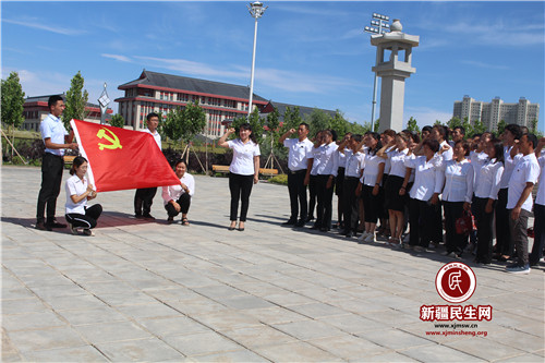 在阿克苏多浪公园的人民英雄纪念碑前,党员们重温入党誓词,亲戚也鼓励我成为党旗的护旗手,她和我一起在全村党员前高高举起了党旗。听着她和党员们慷慨激昂的宣誓时,我的内心也是热血沸腾,暗自下定决心认真学习、努力工作,积极的向党组织靠拢,不辜负她对我的希望,争取早日成为一名正式党员。