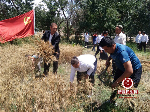 联谊活动结束后,各支力量党员干部及该村党员一起4小队无劳动力家中去帮助收麦子,加深亲戚之间的了解,增进感情。