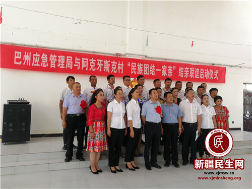 村活动中心,100多人欢聚一堂,年度结亲启动仪式开始了。几年来,结亲干部们牢记”一次结亲,终身结缘“,高举民族团结伟大旗帜,贯彻党的民族宗教政策,宣传落实惠民政策,村容村貌焕然一新。他们和亲戚同吃一锅饭,共叙一段情,越发朴实而接地气的脸庞,真诚的话语引来了爱心物资,协调了开办了幼儿园,建成了乡村特色餐厅和巴扎。巍峨雄伟的天山,见证了全社会对精准扶贫的关注;奔腾不息的塔里木河,吟诵着阿克牙斯克村发展的快乐篇章,生动的场面描绘了一幅幅民族团结的壮美画卷。