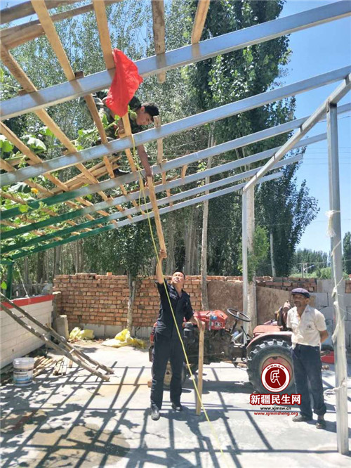 下沉期间,倪书记带领下沉干部入户走访,开展惠民政策宣传,了解群众疾苦,对发现的问题及时解决。帮助贫困户吐尼亚孜·阿不力孜搭建葡萄架,帮助玉素甫·艾合买提卸牛羊饲草料,得到了老百姓的一致好评。