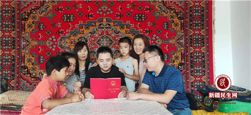 新疆民生网(赵斌 “宪法序言,中华人民共和国是全国各族人民共同缔造的统一的多民族国家,平等、团结、互助的社会主义民族关系已经确立……”7月11日上午,在结亲户伊敏吾普儿家中拿着宪法读本给亲戚宣讲我国宪法的市场监管局干部李凌这样说道。