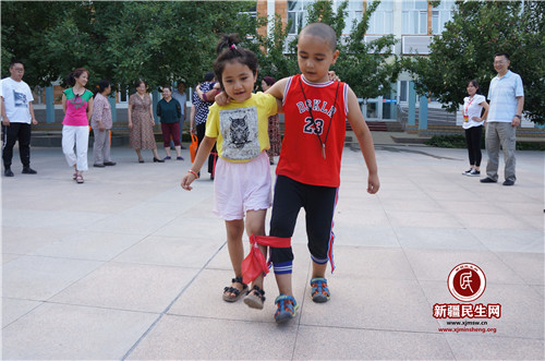 新疆民生网(王依丹)7月26日,克拉玛依区胜利路街道胜利社区工作队组织社区干部、工作队队员、结对亲戚、居民开展了一场“民族团结一家亲”趣味运动会,吸引百余名居民参与。