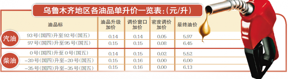 市质检局计量处介绍,目前,市场上油品已升级至国五,而保障车主利益的定价密度需经一段时间的检测得出统一的油品定价密度值,目前乌鲁木齐暂时按照国四油品定价密度值对油价进行密度调价,一旦国五油品定价密度值确定后将按照新标准执行。