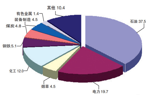在支柱行业中,石油工业增加值264.07亿元,下降4%;电力工业138.71亿元,增长18.5%;装备制造工业31.65 亿元,增长 6.6%;化学工业 84.37 亿元,增长4.1%;烟草工业 31.96 亿元,增长 14.5%;煤炭工业33.92 亿元,增长 7.3%;钢铁工业 36.02 亿元,下降28.3%;有色金属工业10亿元,增长8.3%。