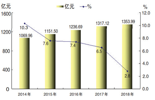 2014—2018年地区生产总值及增速