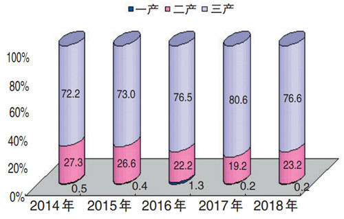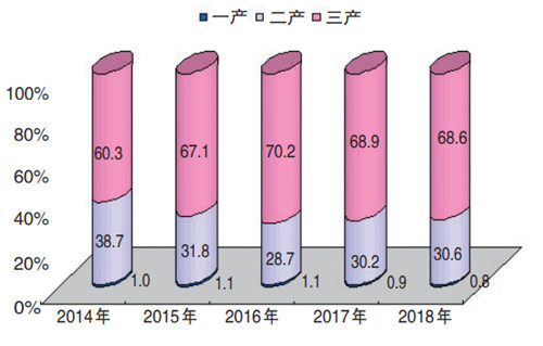2014-2018年三次产业增加值占地区生产总值比重