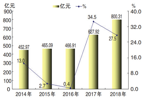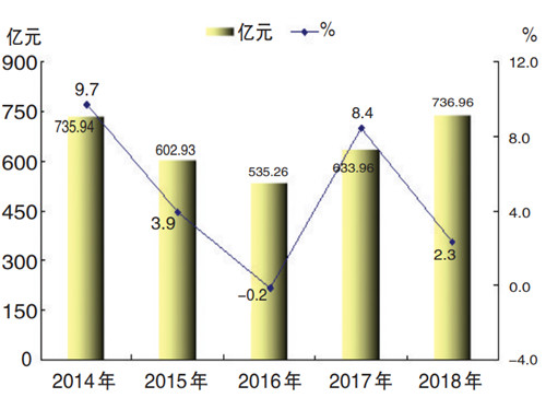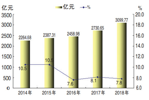 2014-2018年工业增加值及增速