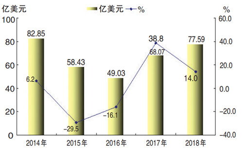 2014-2018年外贸进出口总额及增速