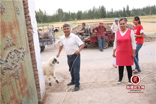 新疆民生网(石小权)为深入全面贯彻落实习近平总书记关于扶贫的重要论述精神,精准扶贫、精准脱贫,坚决打赢脱贫攻坚战。6月21日下午,在阿克陶县加马铁热克乡好肉畜牧农民专业合作社为喀什博依村26户建档立卡贫困户发放扶贫羊。