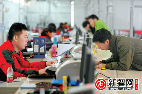 10月18日,在新疆国际会展中心,私家车车主正在办理河滩路、外环路车辆通行费的退费手续。(记者魏向阳摄)