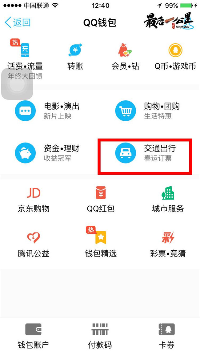 在微信的“钱包”菜单中选择“火车票机票”,即可查询各次列车的时刻、票价及余票情况。