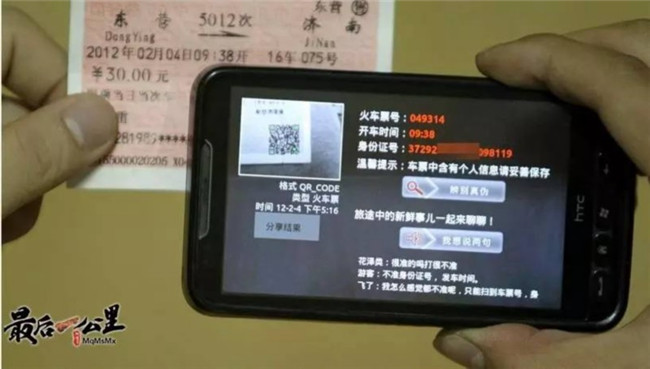 而现在,不少智能手机软件,能轻松读取火车票上的二维码。记者下载某软件,随后将手机镜头对准一张火车票右下方的二维码,几秒钟后,车票的信息就出现了。 且读取的信息与身份证信息一致。