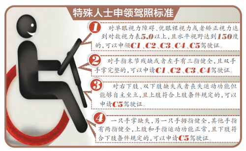 除此之外,在驾驶证审验换证等业务上,有一种情况须格外留意:残疾驾驶人驾照有效截止日期在2014年4月1日之前的,不予恢复,再度申领驾照的话,须重新预约各科目考试,考试合格后取得相应驾照;2014年4月1日之后的,按照相关规定可申请恢复相应准驾车型驾照。