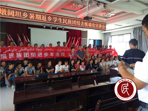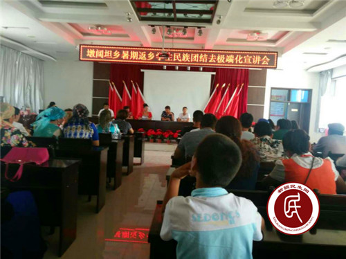 新疆民生网讯 7月18日下午,巴州尉犁县墩阔坦乡为暑假期间返乡的大学生开展了一场“去极端化”宣传教育活动,墩阔坦乡的5个村近50余名返乡的大中专学生、内高班学生参加。