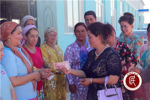 加马铁热克乡党委委员、妇联主席米热姑·阿布都热西提代表加马铁热克乡详细询问了解了劳务输出人员的工作状态、思想动态、生活情况以及工资待遇等问题,听取制衣厂负责人及劳务输出人员关于目前存在困难的意见和建议,同时参观了工作环境,并发放慰问品及慰问金共5000元。