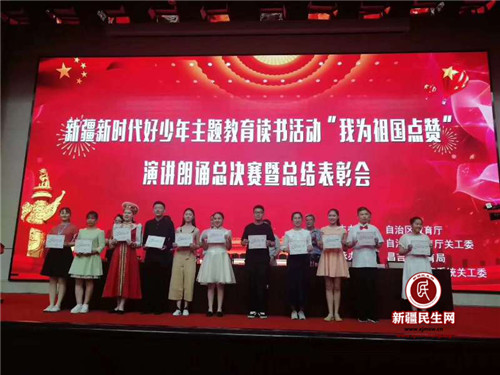 新疆民生网 2019年7月9日-10日,由自治区教育厅和自治区机关工委组织举办的新时代好少年“我为祖国点赞”主题教育演讲、朗诵比赛在昌吉州会场激烈展开。来自全区15只代表队,121名选手参加了此次比赛。比赛分小学组、初中组、高中组(三个组别)。台上的比赛精彩纷呈,优美的声音,激昂的语调,流畅的幻灯片,把现场气氛一次一次推向高潮,在场的观众和评委共享了这一视听盛宴。
