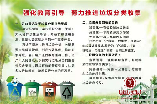 新疆民生网(米娜、卞永军)垃圾事不小,牵着民生,连着文明,关乎生态环境。为全面推进城关镇农村生活垃圾减量化、资源化、无害化,阜康市城关镇积极发挥镇村两级力量,强化措施保障,加强宣传引导,推动全镇垃圾分类见成效。