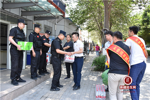 新疆民生网(霍延磊)7月24日上午,昌吉市建国路街道和畅园社区组织爱心企业家、志愿者共同开展“夏日送清凉,警民情意浓”活动,走进辖区便民警务站,为奋战在一线的执勤民警送去消夏物品。