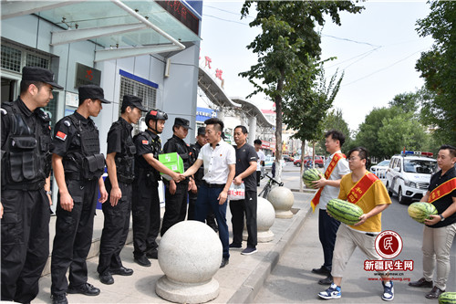 小暑不算热,大暑三伏天,连日来,昌吉市持续高温。为确保城市的安定和谐,烈日下执勤民警全力以赴奋战在一线,任劳任怨、忘我工作。和畅园社区与爱心企业家向正在执勤民警表达了敬意和慰问。便民警务站的负责人对和畅园社区开展的慰问活动表示感谢。