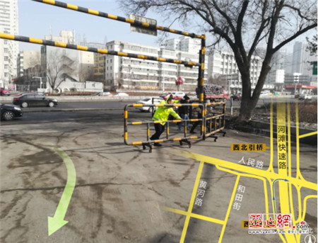 2017年6月开始,由于施工需要,人民路立交桥西南引桥暂时封闭。昨日,记者从乌鲁木齐市公安局交警支队快速路大队了解到,随着春季到来车流量增加,河滩快速路北向南早晚高峰交通压力较大,特别是华凌立交桥、人民路立交桥路段排队缓行情况较为明显。为方便通行,快速路大队打开了人民路立交桥的西南引桥。