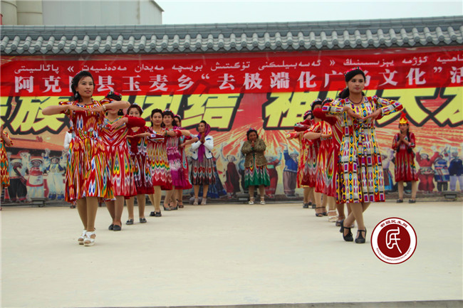 新疆民生网( 何山)5月13日,阿克陶县玉麦乡妇联、工会联合组织“去极端化”文体活动,本次活动在玉麦乡人民政府前群众文化广场举行,全乡600余名群众观看表演。