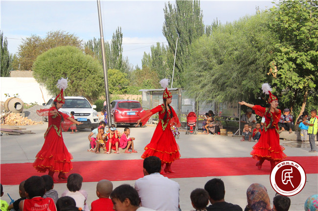 新疆民生网 (高威) 8月12日,克州阿克陶县加马铁热克乡阔什铁热克村欢声笑语格外热闹,原来是新疆各大院校艺术专业在校学生成立的冰山声音艺术团在文艺义演,300多名村民闻讯赶来观看节目。