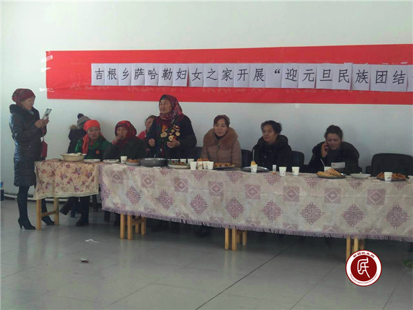 新疆民生网讯(通讯员 舒琴)为增强全村各族群众之间的情感,促进民族团结一家亲,弘扬少数民族文化,淡化宗教氛围,提高妇女生活质量,增进家庭和谐幸福,展示妇女靓丽人生。1月10日,克州乌恰县吉根乡萨哈勒村开展“迎元旦·民族团结一家亲”联谊活动。吉根乡党委委员、人大主席哈孜拜克·扎热别克、克州疾控中心住吉根乡萨哈勒村“访惠聚”工作组人员、“国境线上的母亲”布茹玛汗·毛勒朵以及萨哈勒村妇女等60余人参加了此次联谊活动。