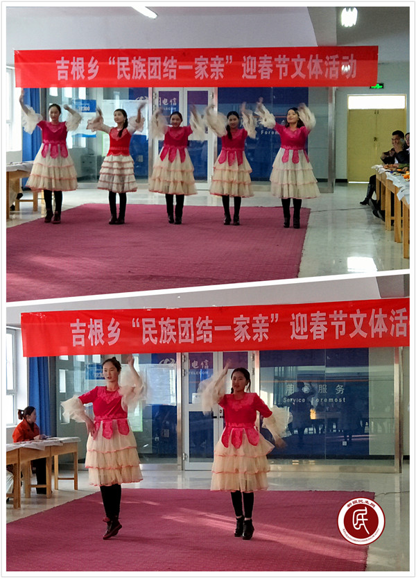 新疆民生网讯(通讯员 空都孜·努尔艾力 舒琴)新春来临之际,寒冷,不约而至,帕米尔高原下的吉根乡格外的寒冷,但是吉根乡为民服务大厅内,歌莺舞燕、琴瑟声声,充满着欢乐与热情。为认真贯彻落实中央十八届六中全会精神、自治区、克州、乌恰县等有关会议精神,进一步促进吉根乡各民族之间的团结友谊,1月22日,由乌恰县吉根乡人民政府主办,吉根乡团委、妇联承办的“民族团结一家亲”迎春节文体活动在吉根乡为民服务大厅火热开展。