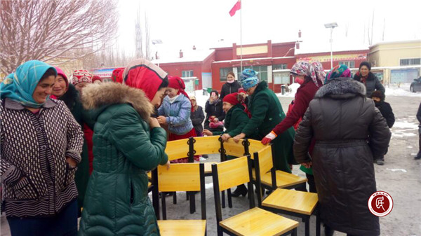 村妇代会主任努尔比亚·吐尔地别克宣讲了《妇女儿童发展纲要》等有关政策内容,号召广大妇女们团结、奉献,尽力帮助生活上有困难的家庭,让社会主义新农村处处充满和谐。