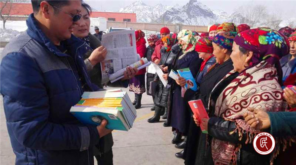 新疆民生网讯 (通讯员 朱哲)为充实村民的精神文化生活,向村民传播科学致富知识以及党和国家各项惠民政策,深化对群众“爱祖国、感党恩、听党话、跟党走”教育。2月14日,乌恰县膘尔托阔依乡干部走进村民身边,向村民免费发放汉、维双语报刊以及各类书籍,让群众及时了解当下时事新闻,做有文化、赶时代的好村民。