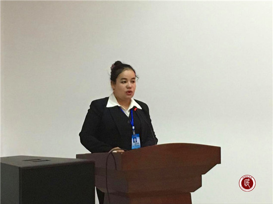 (图为康苏学校代表在进行演讲)