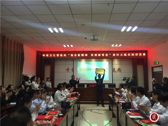 新疆民生网讯 (通讯员 梁春燕)为贯彻落实县委、县人民政府“领会新精神 实现新常态”集中宣讲活动,进一步推动管理咨询工作深入开展,激发干部职工昂扬向上的工作热情,提高环卫队伍政治理论及业务水平,切实打造一支政治坚定、思想过硬、对党绝对忠诚的干部队伍,奇台县环境卫生管理局举办了“落实总目标 实现新常态”岗位大练兵知识竞赛活动。