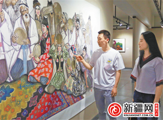 记者在展览现场看到,这些美术作品有着不同的地域特色和鲜明艺术风格。来自广西、青海、南京及新疆四地近二十位艺术家风格各异的作品在同一展览上展出,艺术家们用中华民族传统的笔墨描绘出对苍生万物的敬畏之心,讴歌各民族之间的和谐之美。