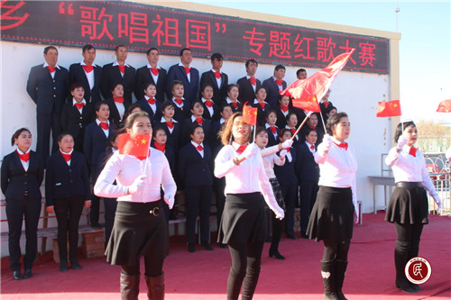 13个村和机关的500余名参赛队员,用饱满的热情,满怀的深情演绎了《没有共产党就没有新中国》《最美的还是我们新疆 》《歌唱祖国》《保卫黄河》等红色经典曲目,唱出了力量、唱出了干劲,用红色歌曲的主旋律抒发了广大群众对党和祖国的无比热爱和深深祝福。