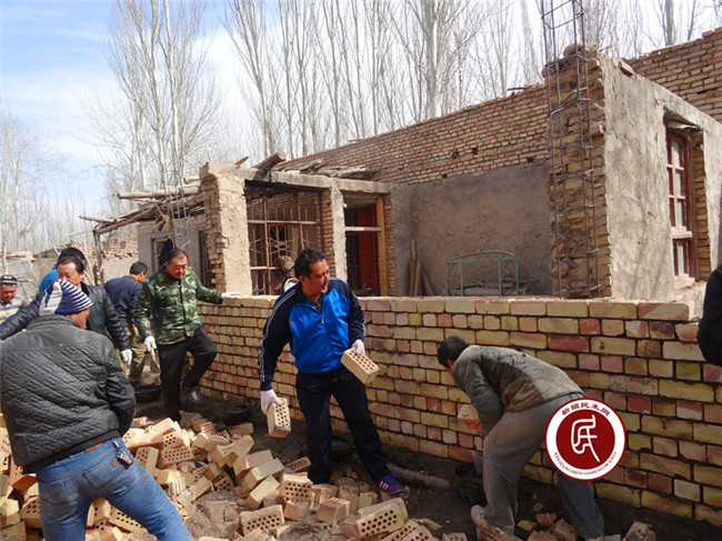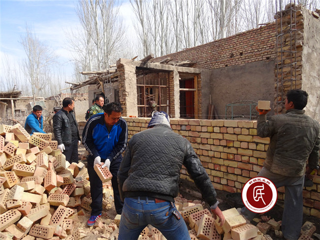 新疆民生网讯,3月2日,克州人社局第三批“访惠聚”活动住玉麦乡8村工作组在走家入户中,了解到阿地力·买买提家马上要修建房子,于是总领队努尔卡那提·艾木如拉同志带领住村工作组员主动带着铁锹来到阿地力·买买提修房工地,在施工人员的安排下,热火朝天帮助其“递砖头、铲混泥土、砌毛坯墙,打下手”,真正融入到与村民同吃同住同生活同劳动中,促进了住村工作组同村民之的感情交流。