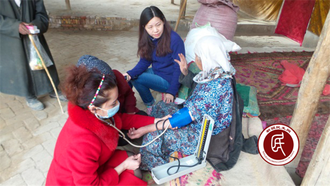 随后,医生向她询问了病情,并做了检查。原来大妈得的是中耳炎,医生当即为她医治,留下药,并为两位老人测了血压。临走时,工作组再三叮嘱大妈要按时用药,尽快恢复健康。大妈擦着眼泪,依依不舍的把我们送到门口,拉着我们的手说:“我的孩子不在身边,看到你们,就像看到了我自己的孩子,热合买提,热合买提……。”