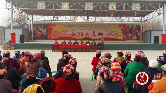 新疆民生网讯,3月8日上午,自治区发展改革委住英吉沙县托普鲁克乡加依村工作组和村两委班子为庆祝“3.8”妇女节,为全村妇女们献上了一场精彩的文艺演出,工作组蔡健组长代表工作组向加依村全体近400名妇女表示了节日的祝贺和衷心的感谢。文化广场上,妇女同志们穿着格外漂亮的花裙子,戴着五颜六色的小花帽,个个精气神十足,脸上洋溢着灿烂的笑容。